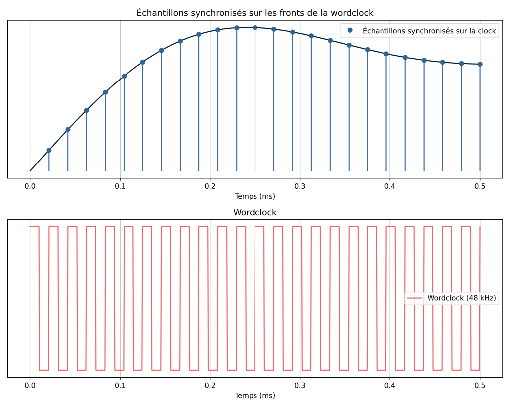 Visualisation temporelle d’un échantillonnage avec une horloge synchronisée par wordclock