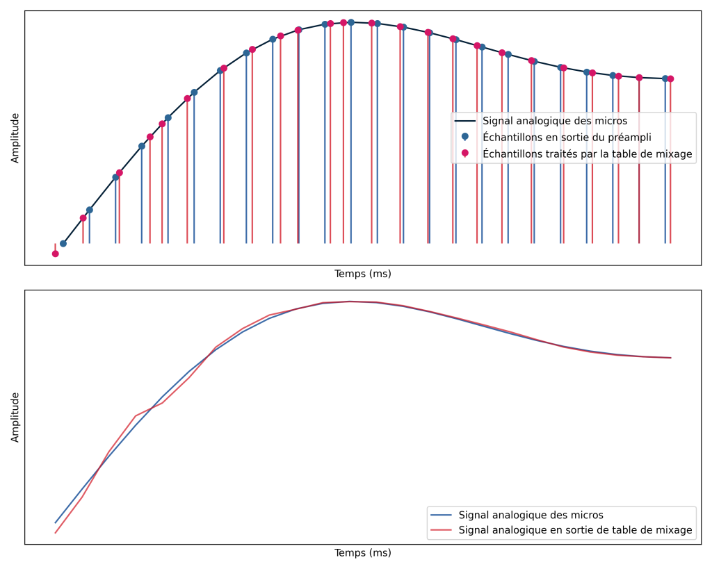 • Le préamplificateur lance les échantillons à une cadence fixe (par exemple, 48 000 fois par seconde).